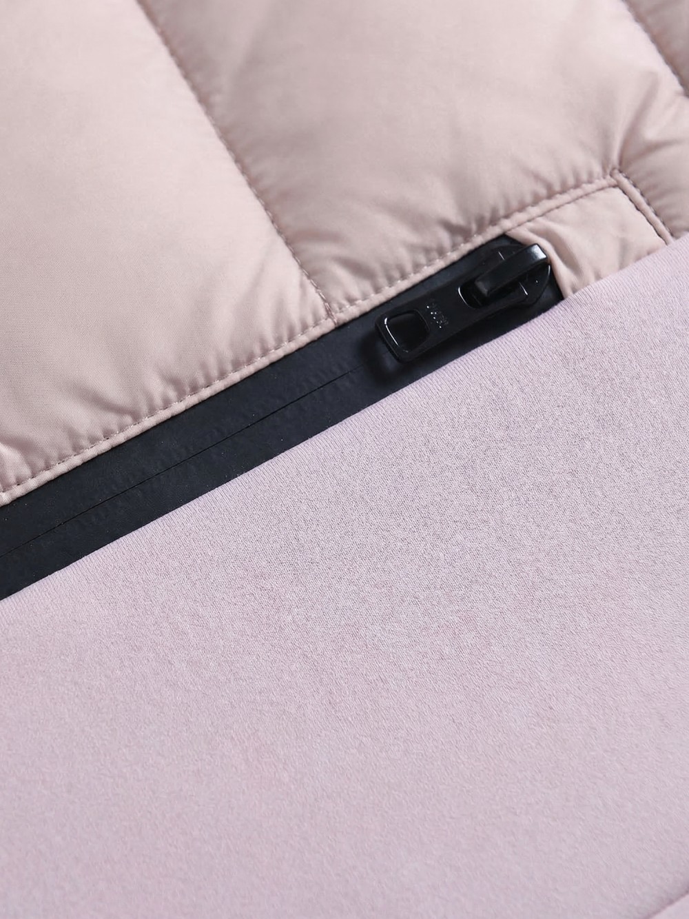 Передняя часть выполнена из прочного стёганого материала с современным утеплителем тинсулейт, который эффективно удерживает тепло, оставаясь лёгким и воздухопроницаемым. Этот утеплитель известен своей способностью сохранять комфортную температуру без лишнего объёма, поэтому куртка остаётся лёгкой и удобной в течение всего дня.