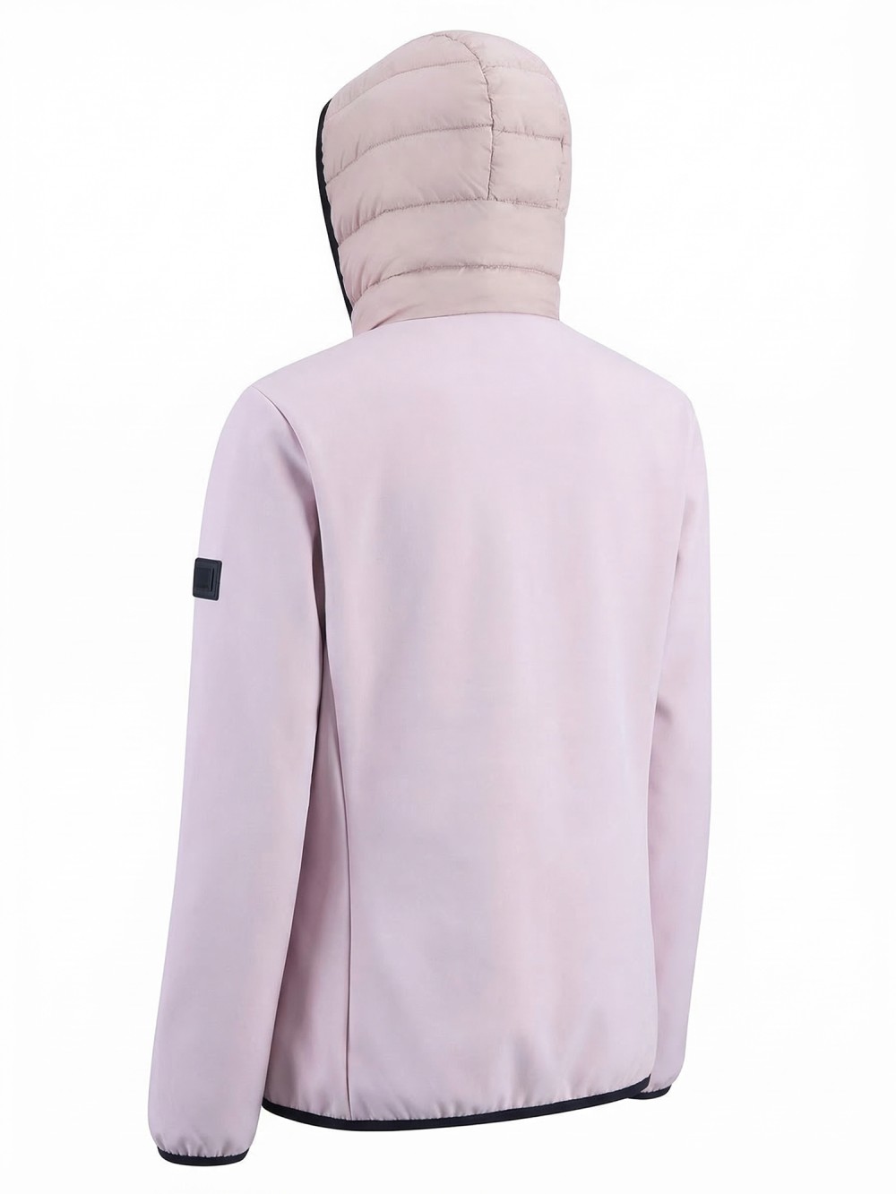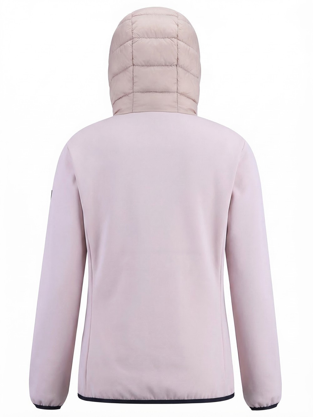 Рукава и боковые части выполнены из эластичного материала софтшелл, который защищает от ветра, хорошо тянется и обеспечивает свободу движения. Благодаря этому куртка удобно сидит по фигуре и подходит как для активного образа жизни, так и для повседневной носки.