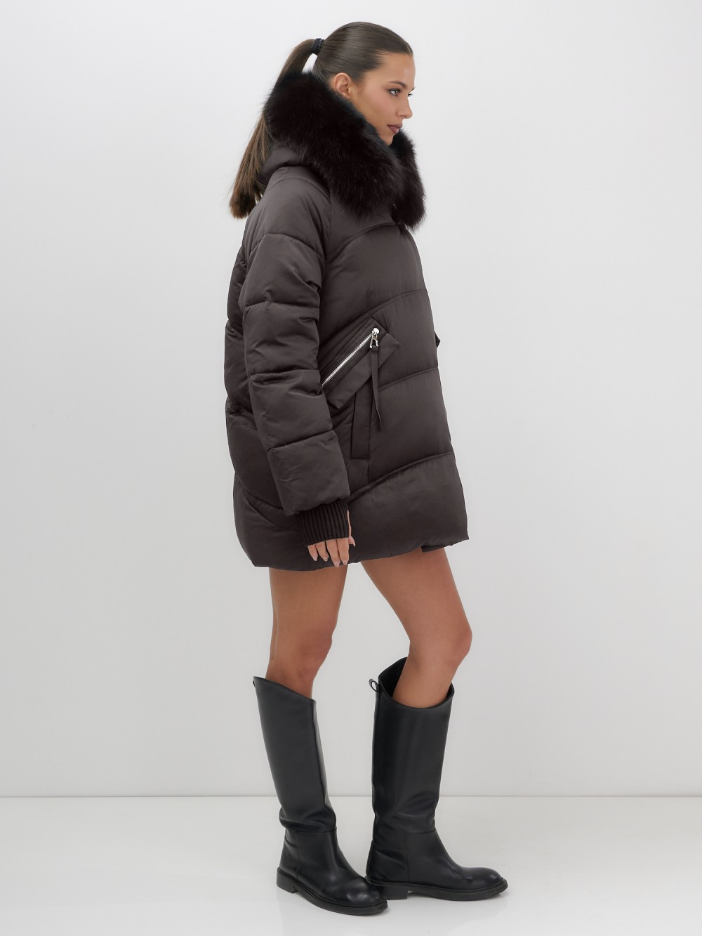 Каждая деталь продумана до мелочей: проклеенные швы, изысканные заклепки, практичный вырез для пальца на манжетах, удобные прорезные карманы с кнопками и молнией-обманкой. Съемная опушка из натурального песца трансформирует образ по вашему желанию. Безупречное качество меха говорит о безупречном вкусе владелицы.
