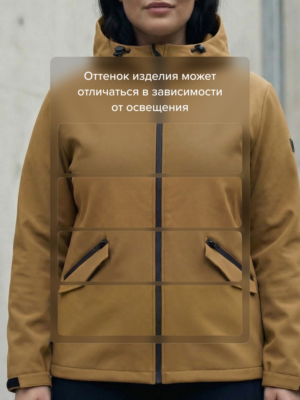 Ткань плотная, эластичная и приятная на ощупь, хорошо держит форму и не сковывает движения. Ветрозащитная мембрана защищает от холодного воздуха, а водоотталкивающая пропитка помогает справляться с легким дождём и влагой.