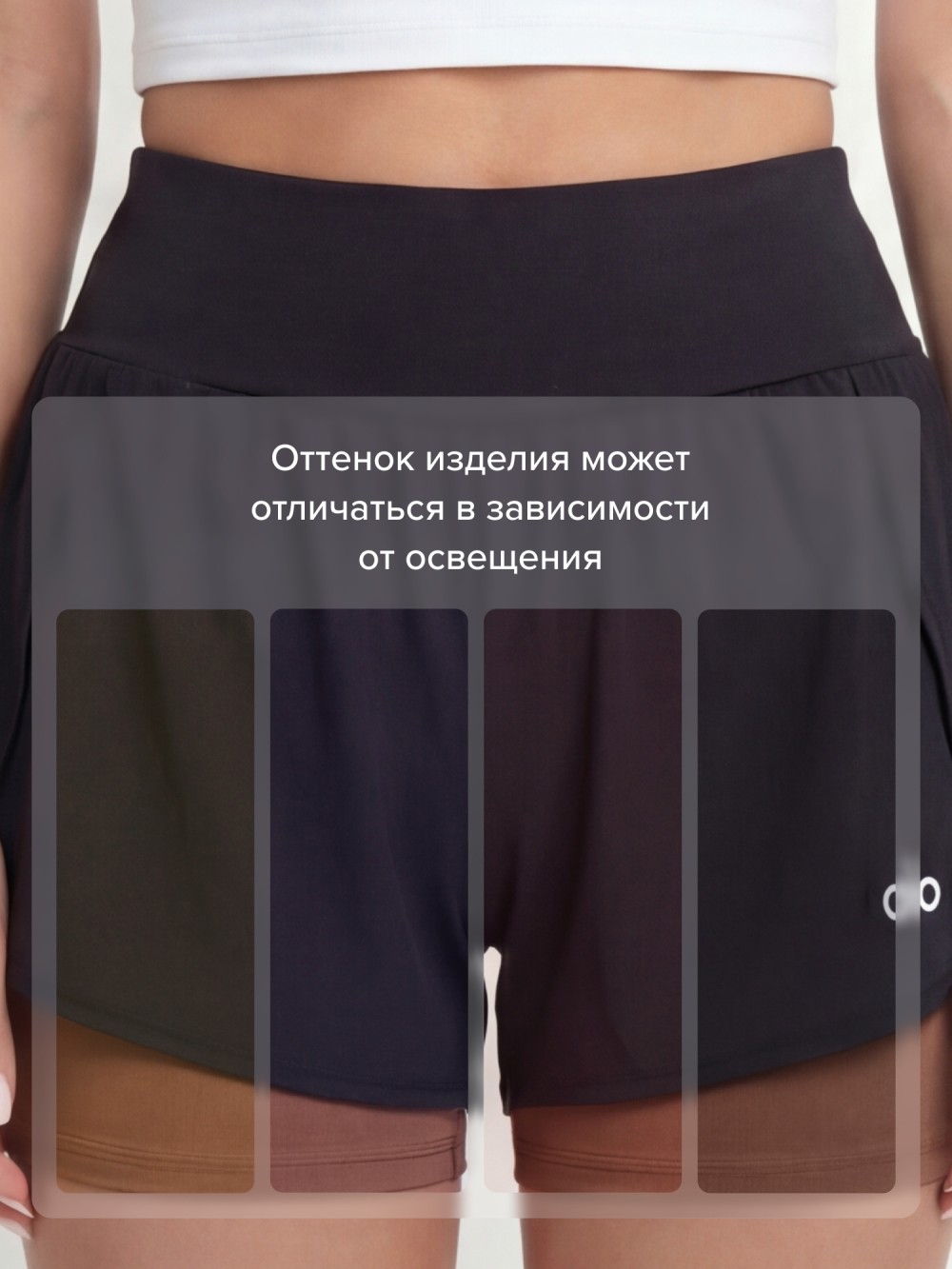 Внутренние шорты плотно прилегают к телу, не задираются и не просвечивают, а внешний слой юбки добавляет легкости и женственности образу. Благодаря эластичной ткани изделие отлично тянется, подстраивается под фигуру и не сковывает движения даже при активных нагрузках.