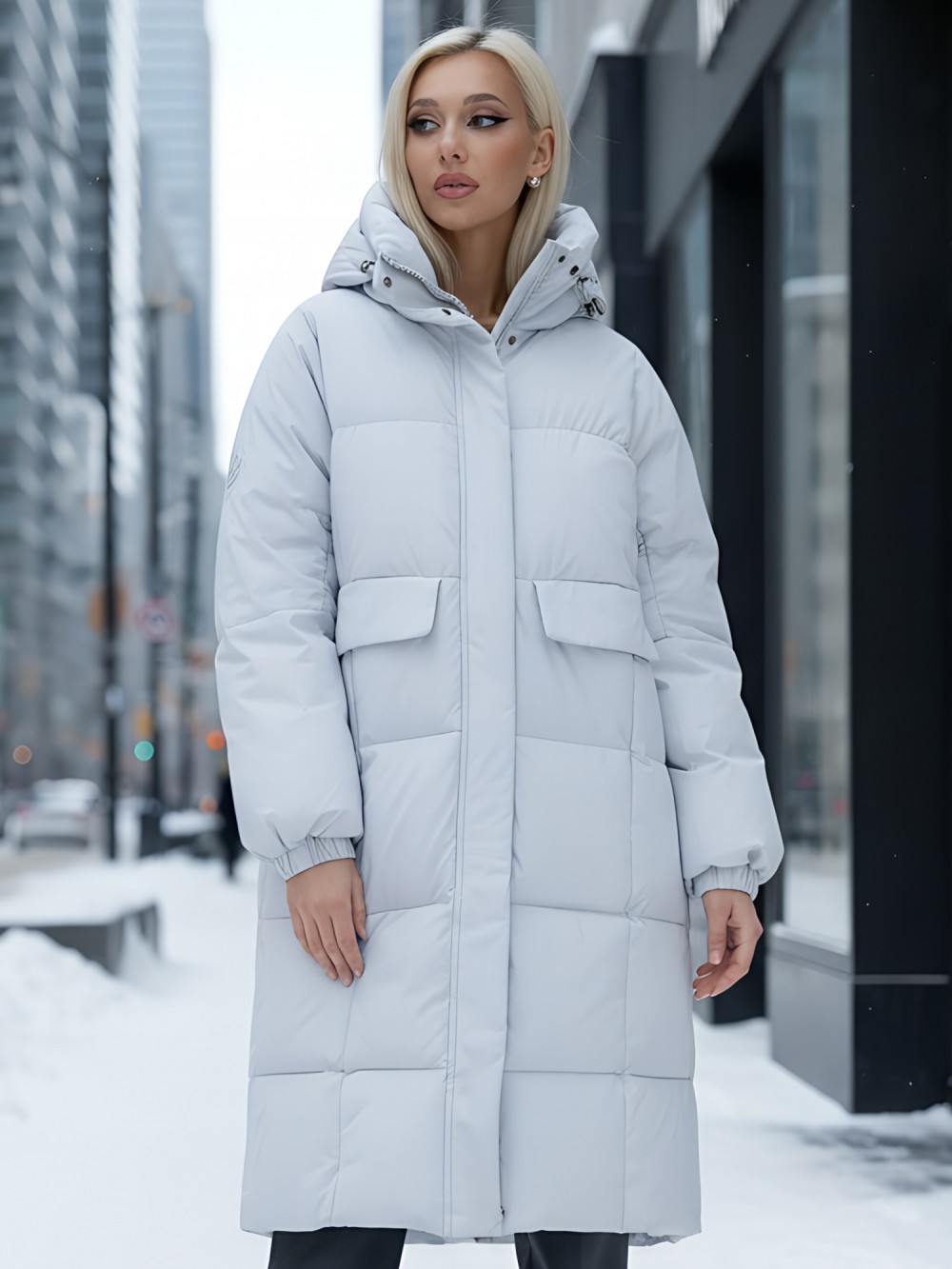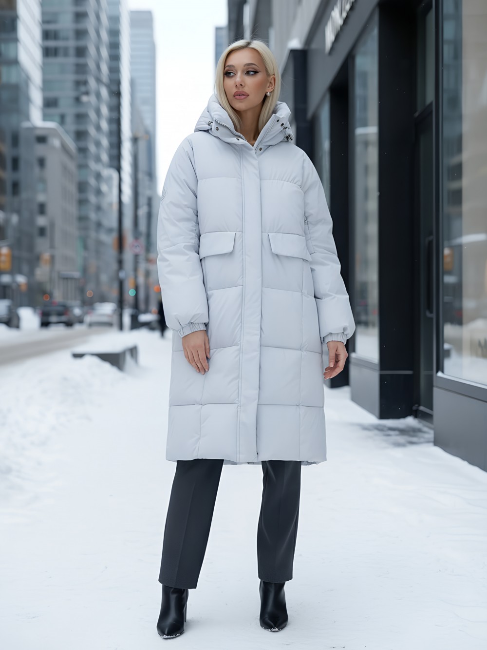— Двойная молния: обеспечивает легкость застегивания и возможность регулировки объема, что делает пальто удобным в носке.