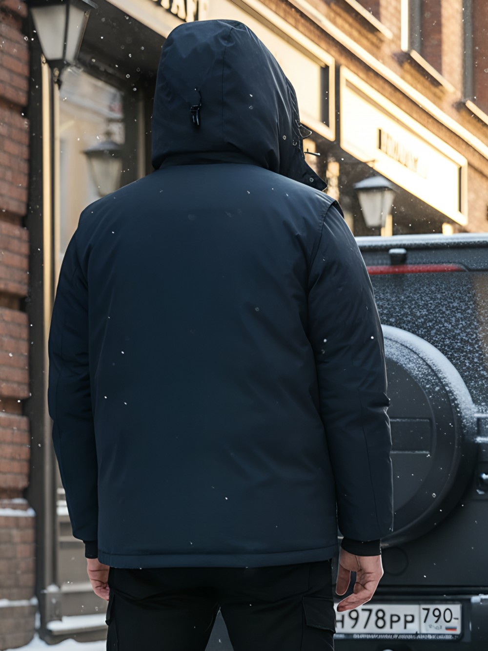 Капюшон надежно защищает от различных внешних факторов, таких как снег, дождь, ветер.