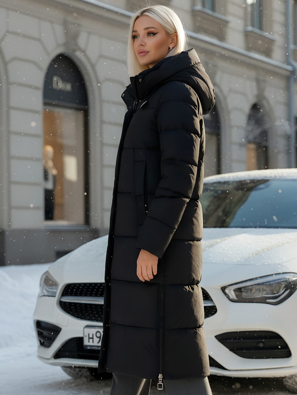 Зимнее женское утепленное пальто с капюшоном и идеальными деталями для вашего комфорта.