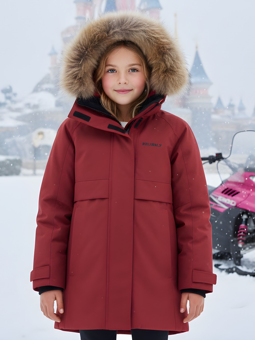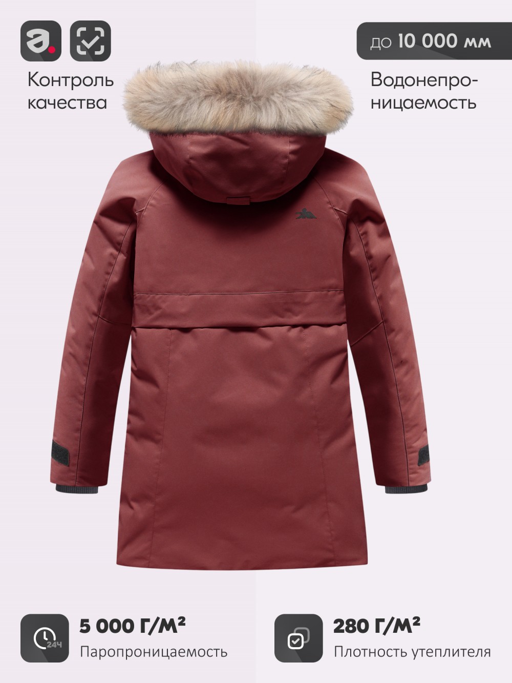 Капюшон с меховой отделкой надёжно защищает от ветра и снега, а фиксаторы на рукавах, по линии талии, на капюшоне и по низу парки помогают сохранить тепло и защитить ребёнка от продувания.