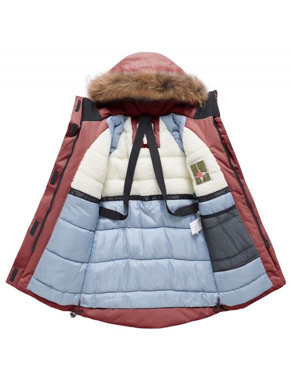Парка зимняя подростковая для девочки с капюшоном и мехом бордового цвета 9534Bo