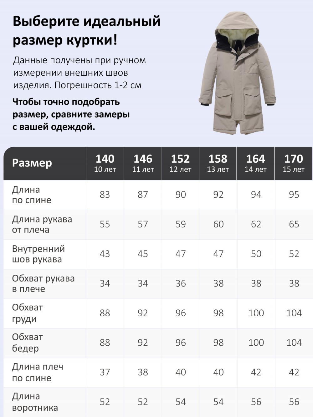 Зимняя парка для мальчика-подростка разработана с учётом всех требований к тёплой и практичной верхней одежде для холодного времени года. Свободный крой до колена обеспечивает удобство и свободу движений, модель одинаково комфортна как для школы, так и для повседневных прогулок. Верх выполнен из плотной износостойкой ткани с водоотталкивающими свойствами, а проклеенные швы надёжно защищают от ветра и влаги, сохраняя тепло внутри. Современный утеплитель тинсулейт с плотностью 280 г/м² поддерживает комфортный температурный режим и позволяет носить парку в диапазоне от +5 до –25 градусов.