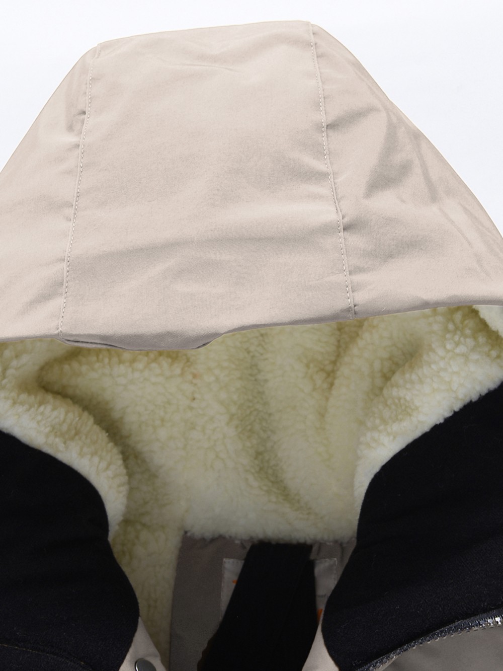 Внутренняя подкладка из овчины, полиэстера и флиса делает модель особенно уютной и приятной к телу. Капюшон несъёмный, он плотно прилегает и надёжно защищает голову в непогоду. Стояче-отложной воротник прикрывает шею и обеспечивает дополнительную защиту от ветра.